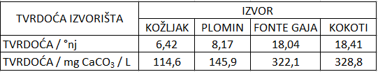 Tvrdoće voda izvora koje koristi Vodovod Labin kreću se od lagano tvrdih voda do umjereno tvrdih. U nastavku je prikazana tablica tvrdoća pojedinih izvora. S obzirom da se potrošači opskrbljuju iz različitih zona opskrbe, ukoliko imaju dodatnih pitanja, molimo da se jave u Vodovod kako bi ih što preciznije svrstali u koju kategoriju tvrdoće spadaju.